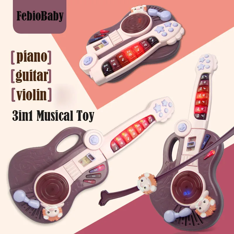Multifunctional 3 in 1 Baby LED Musical Toys Early Educational Guitar/Piano/Violin 3 Modes Playing